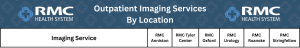 We have multiple locations at RMC that provide a full range of radiology/imaging services for the convenience of our patients. Please refer to each section below to determine where you will need to have these radiology/imaging procedures performed.